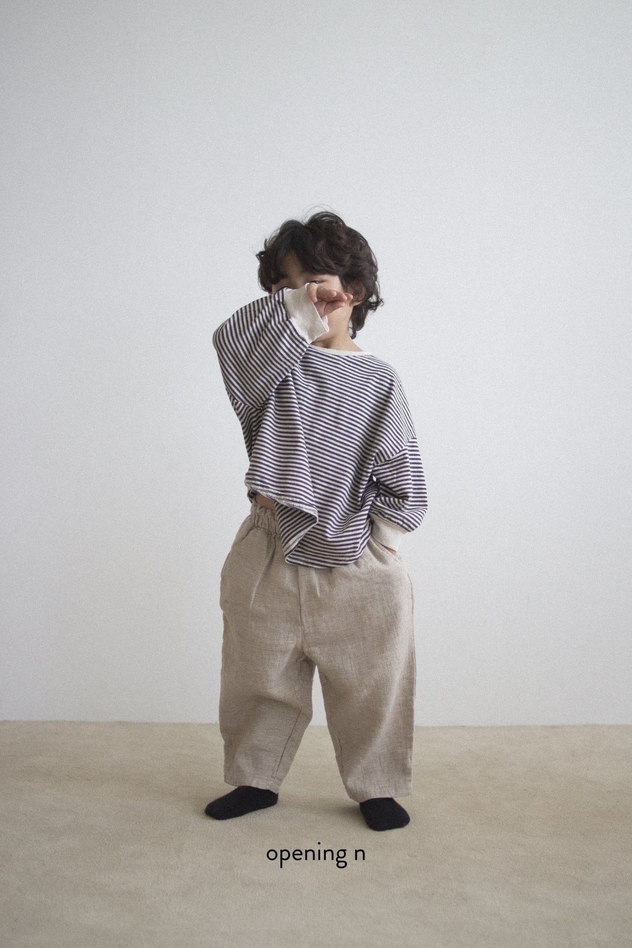 サイズアップし、袖をロールアップして着こなしてもかわいいです