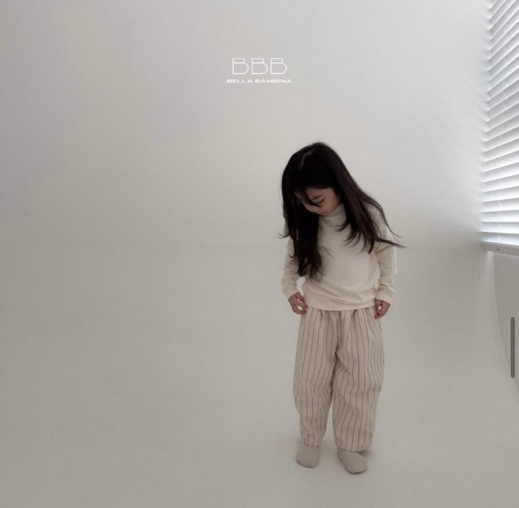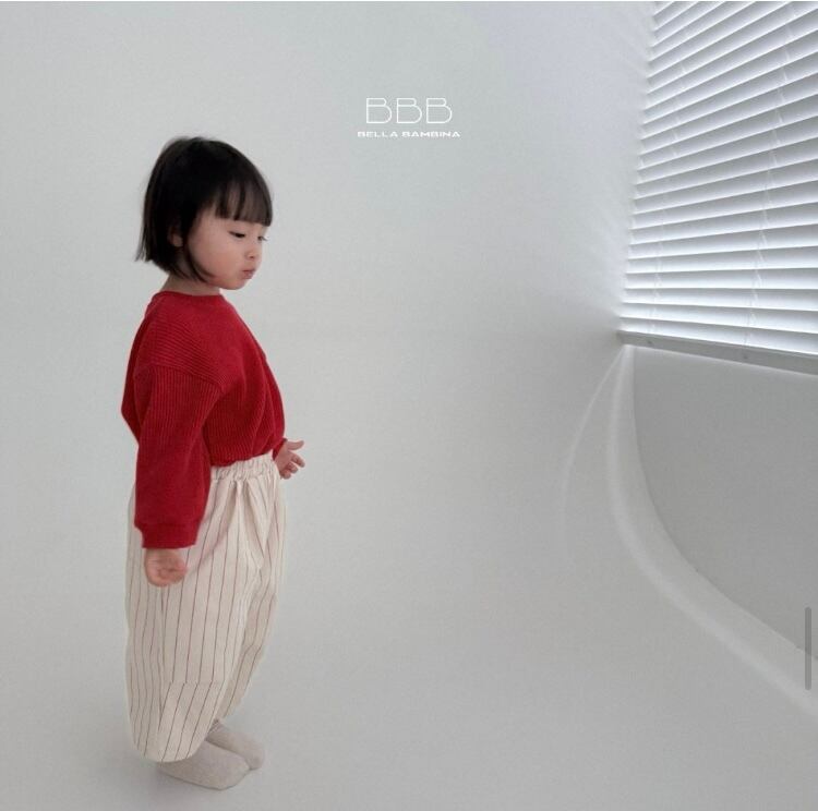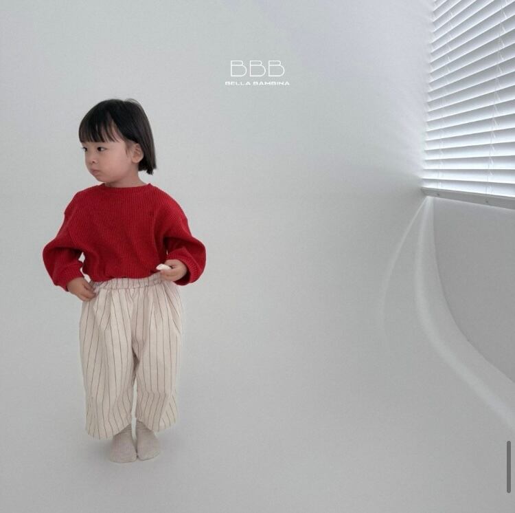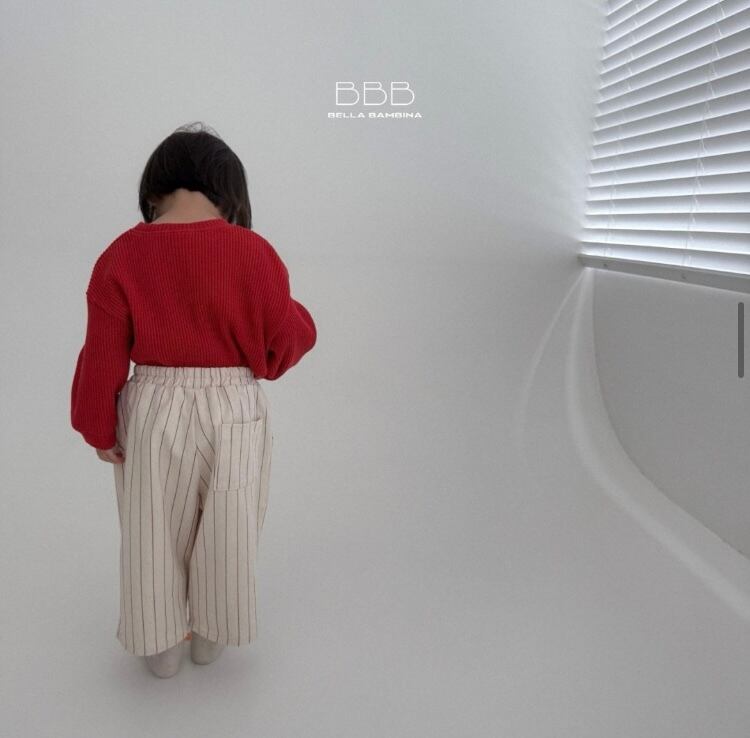 ふんわりとしたワイドシルエットが可愛いストライプ柄パンツ。